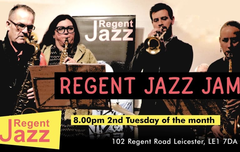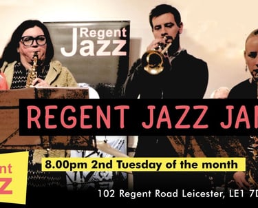 Jam sessions last Tuesday of every month . Next Jam is 28th October 2025 8.00pm - 10.00pm. The house band with professional trombonist Martin Gladdish will feature local guest musicians, and there is an open Jam spot for anyone to join in on their favourite number. Entrance is free and all listeners, players and performers are welcome. Send us an email to info@harboroughjazz.com for further information.