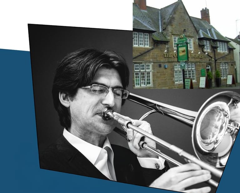 Jam sessions last Tuesday of every month . Next Jam is 31st March 2026 8.00pm - 10.00pm. The house band with professional trombonist Martin Gladdish will feature local guest musicians, and there is an open Jam spot for anyone to join in on their favourite number. Entrance is free and all listeners, players and performers are welcome. Send us an email to info@harboroughjazz.com for further information.